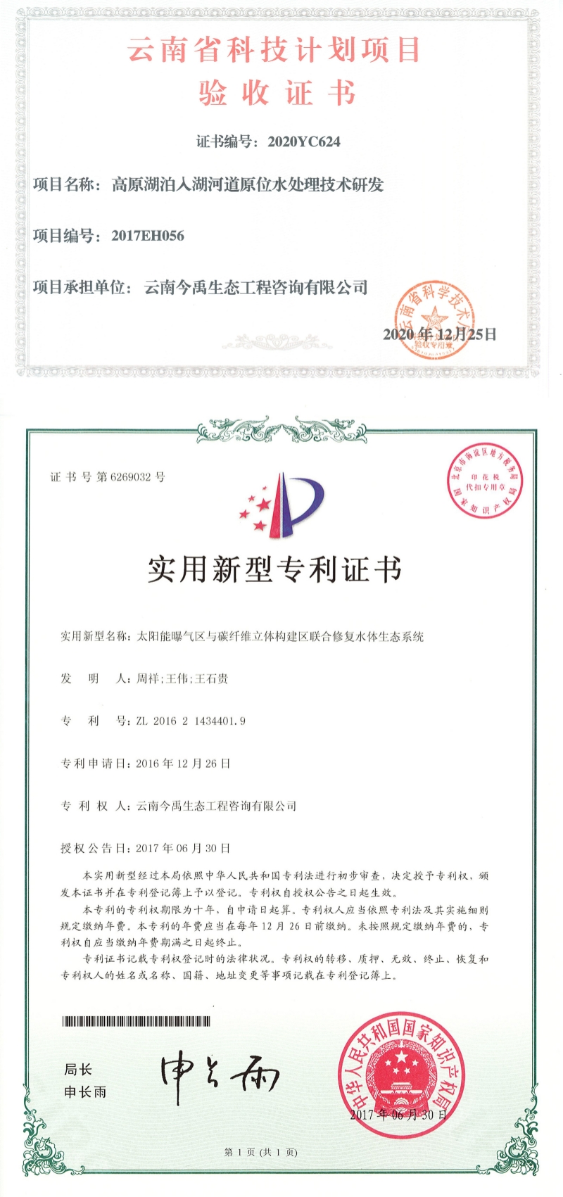 公司先后認(rèn)定為“高新技術(shù)企業(yè)”、“國(guó)家科技型中小企業(yè)”、“云南省科技型中小企業(yè)”、“云南省創(chuàng)新型中小企業(yè)”、“云南省專(zhuān)精特新中小企業(yè)”、“昆明市科技創(chuàng)新型試點(diǎn)企業(yè)”、“昆明市重點(diǎn)科技服務(wù)機(jī)構(gòu)”和“昆明市企業(yè)技術(shù)中心”,通過(guò)ISO9001質(zhì)量管理體系認(rèn)證,是云南省環(huán)保產(chǎn)業(yè)協(xié)會(huì)理事單位,“云南省水土保持學(xué)會(huì)生態(tài)修復(fù)和城市水土保持生態(tài)建設(shè)專(zhuān)委會(huì)”掛靠單位。
