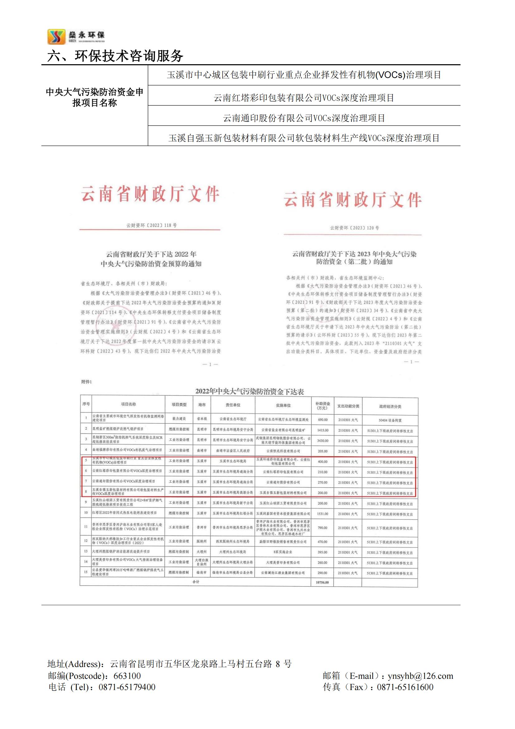 截止2023年10月,公司幫助云南省多個行業(yè)企業(yè)成功申報的中央大氣污染防治資金已入庫項目共計20余個,申報項目已獲批總資金近一億余元。公司承接的云南省內(nèi)中央大氣污染防治資金申報項目申報成功率高,成效顯著,服務(wù)細(xì)致高效,在云南省中央大氣污染防治資金申報領(lǐng)域具有豐富的經(jīng)驗。